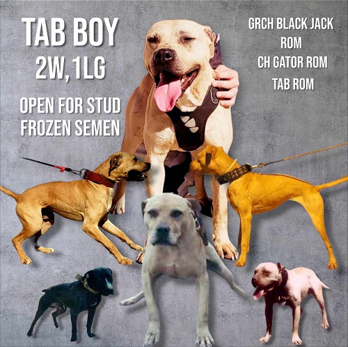 I have open for stud strong Stonewall / Honeybunch dogs, and pure Red Boy, strong Dizny, and strong Boogie Boy, see the pedigree photos and descriptions below